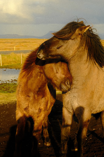 He invited us in and told us we could go right into the stalls with the horses. This genuinely surprised me. I had grown up around horses, my partner had studied horse husbandry and veterinarian care and his suggestion to just enter the stalls with these 380 kilogram (840 pound) animal flew in the face of what we knew about horse care and safety, but as we would come to learn, Icelandic horses are not like the horses we know.