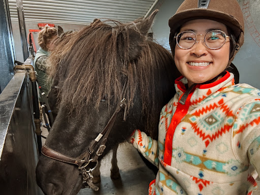 Immediately my partner happily enters a stall with the biggest horse in the barn and Mr. Iceland hands her a brush and she begins brushing this big beautiful horse with a huge smile on her face. We could tell the horse was enjoying itself based on its body language and it was being so gentle with my partner.