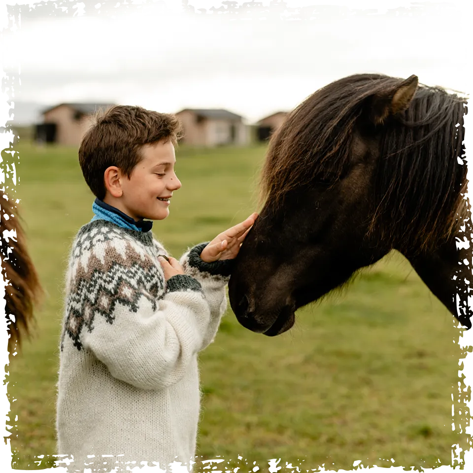 Only calm, experienced Icelandic horses that are well suited to working with children are selected. Horse welfare always comes first.
